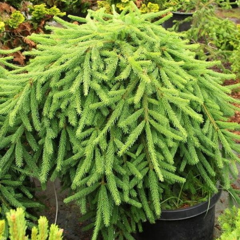 Саженцы ели обыкновенной Фробург (Frohburg) вырастают в стройные хвойные деревья с декоративным шлейфом из плакучих ветвей. Хвоя – дымчато-зеленая, короткая и жесткая. Одинаково эффектно смотрится в массовых посадках и как солитер.Ель обыкновенная Фробург вырастает на 10 см в год, и в 15 лет крупномер достигает 2-2,5м. Яйцевидные шишки из зеленых созревают в бордово-коричневые. Достоинства: устойчивость к холодам и морозам; хорошо выносит тень, но быстрей растет на солнце; Что нужно учесть: почва требуется влажная и хорошо дренированная; молодые саженцы необходимо укрывать в морозы; не выносит застойные воды в грунте.