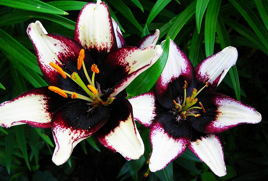 Луковицы Лилии азиатской Танго Блэк Ай (Lilium asiatic Tango Black Eye) при несложном уходе превращаются в высокорослое (до 100 см в высоту) растение, поражающее необычной раскраской. Название гибрида Black Eye говорит само за себя и переводится как «черный глаз». Цветки размером около 15 см в диаметре отличаются белыми лепестками с пурпурно-лиловой окантовкой и черным «глазом» в центре. Этот невероятный контраст не потеряется ни в одном саду и будет привлекать к себе внимание. Сорт с такой экзотической окраской станет отличным дополнением к коллекции лилий как начинающего цветовода, так и профессионала с многолетним опытом.