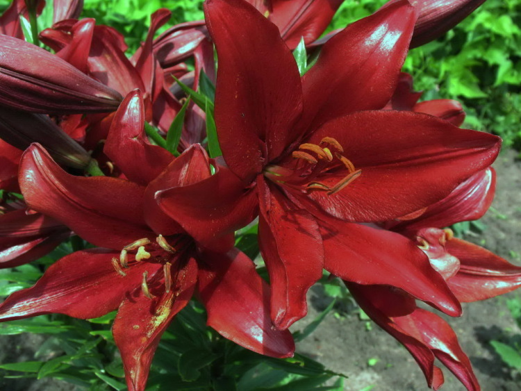 • Окраска цветка : красный, глянцевый, пыльники оранжевые