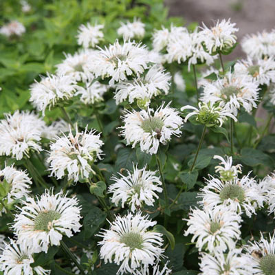 Саженцы Монарды гибридной Bee-Bright (Мonarda hybr.) многолетнее растение с прямостоящими стеблями. Листья ароматные, обладают антисептическим свойством. В высоту достигает не боле 40 сантиметров. В диаметре 45 сантиметров. Лучше всего растет на солнечных пространствах. Не переносит сильный ветер. Морозостойкое растение, устойчиво к вредителям и болезням. Би Брайт цветет белоснежными цветками, которые собраны в густое соцветие. Цветет с июня по август месяц. Хорошо смотрится в центре клумбы рядом с флоксом, аконитом или декоративными злаками.