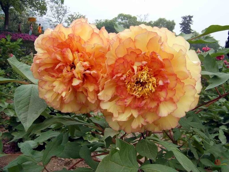 Саженцы пиона древовидного Кинко (Paeonia Suffruticosa Jin ge) - удивительно декоративный цветок, украсит любой сад и приусадебный участок. Куст достигает в высоту до 150 сантиметров. Лепестки красивые, интенсивного зеленого цвета. Цветет с середины лета на протяжении двух-трех недель. Махровые цветки нежного, золотисто-желтого цвета. Вокруг ярко-желтой серединки лепестки окрашены в алый цвет и такого же цвета нежная окантовка по каждому лепесточку. Цветок имеет корончатую форму, его диаметр – около 16 сантиметров. Любит солнечные местности, богатые, хорошо дренированные грунты.