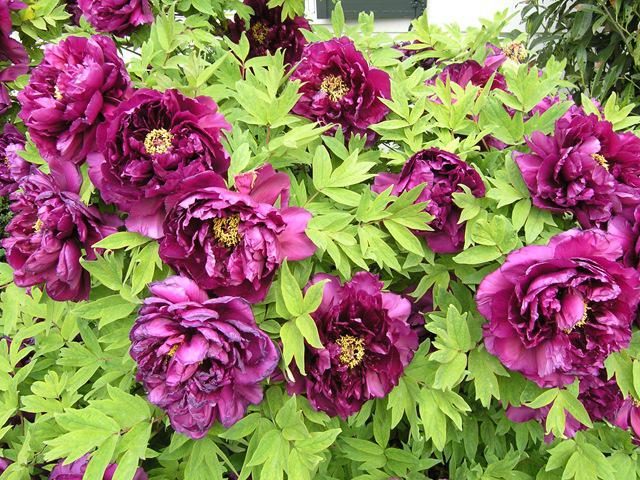 Саженцы пиона древовидного Пурпурная ночь (Paeonia Suffruticosa Dan lu yan) поражает своим обильным цветением - на одном кусте можно наблюдать до 50 цветков. Небольшой куст высотой до 1 метра. Листья ярко-зеленые, красивой формы. Густомахровый цветок диаметром около 15 сантиметров, в начале цветения окрашен в красно-рубиновый цвет. Со временем приобретает интенсивный фиолетовый оттенок. Источает насыщенный приятный аромат. Время цветения – первые летние месяцы. Предпочитает достаточно освещенные участки, не требователен к почве, но предпочитает богатые, с дренажом.