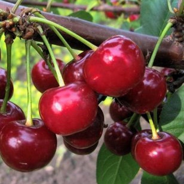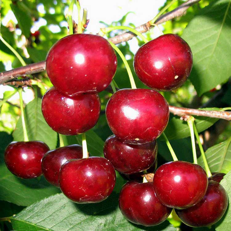 Саженцы Вишни обыкновенной Ивановна (Дюк) (Prunus cerasus) ― черешнево-вишневые гибриды, вырастающие в сильные деревья с мощной кроной. Сорт ценится за крупный (до 7 г) размер ягод темно-красного цвета с нежной мякотью и узнаваемым кисло-сладким вкусом.